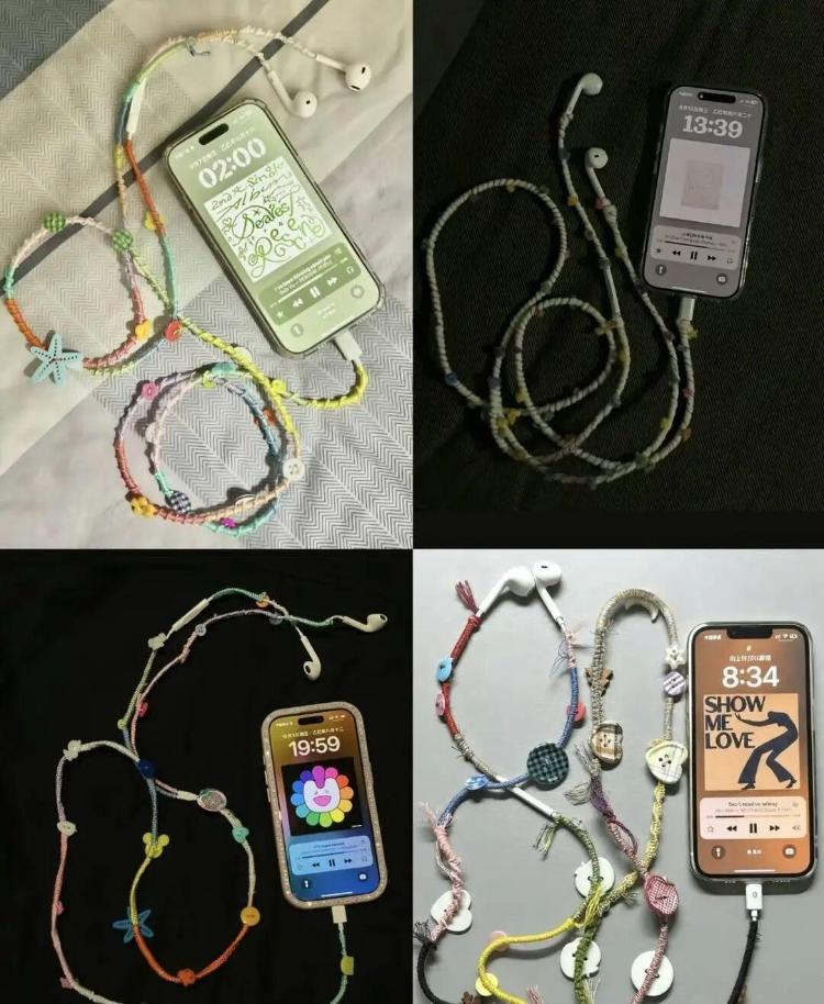 更“卷”的是,这根线还不错被“再贪图”。有东说念主给有线耳机作念手工电镀,让它闪闪发亮;有东说念主贴上贴纸、包上编织线,把它酿成唯一无二的DIY饰品;还有东说念主像串珠同样,把耳机线和其他配饰叠戴在一说念。在小红书上,“编织有线耳机”教程播放量已超百万。