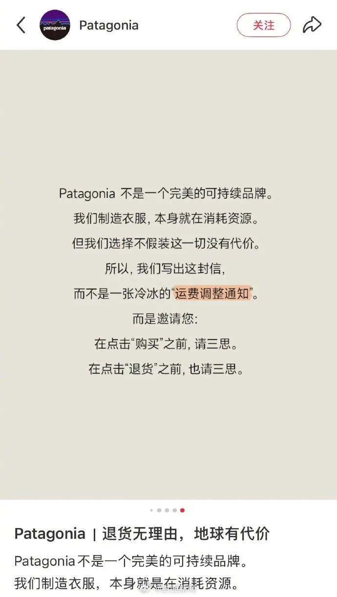 3月30日,Patagonia品牌开启“地球使用费”活动,条目浮滥者在购物时预支一笔物流包装费(首件15元,每加一件5元),获利后不退货可退还用度,若退货则扣除用度并捐赠送环保技俩,银河国际游戏平台app激发烧议。