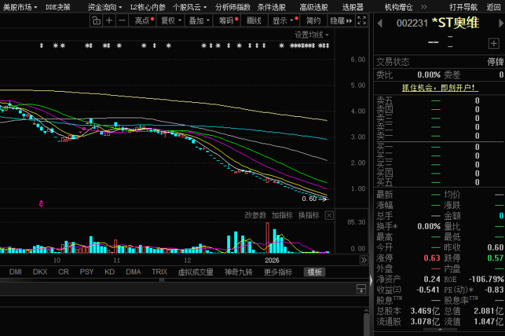 2026年3月21日,奥维通讯股份有限公司(证券简称:*ST奥维,证券代码:002231)的气运迎来结尾。这家曾于2008年登陆老本市集的上市公司,在阅历资金占用、功绩预报“变脸”等一系列风云后,于3月21日同期收到深圳证券往返所的股票闭幕上市决定与中国证监会的立案见知书,成为2026年A股首家因市值不达标而强制退市的公司。