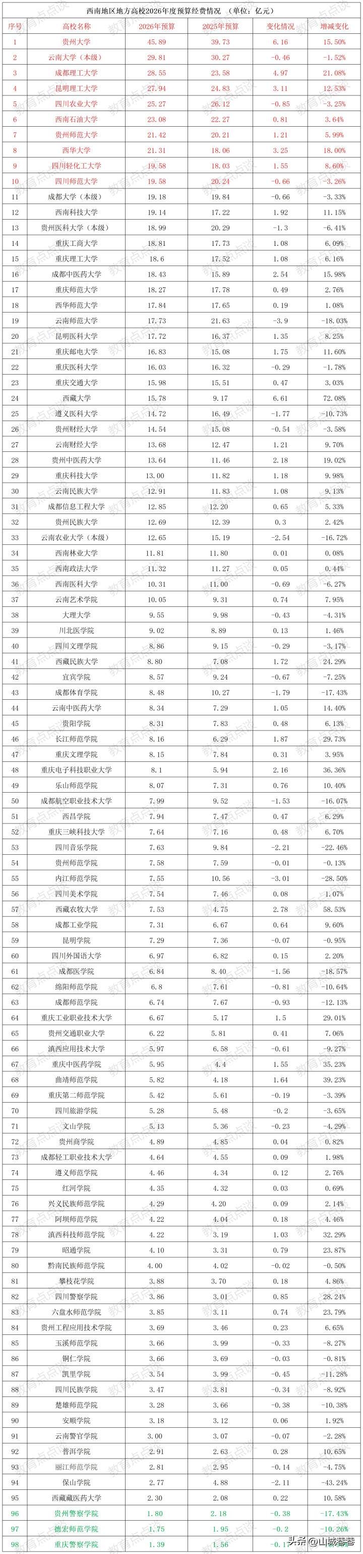 银河国际 西南地区地点高校2026年预算: 贵大第1、云大第2、成齐理工第3