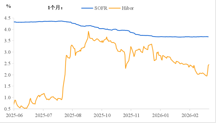 2026年Q1,Hibor与Sofr走势背离▼