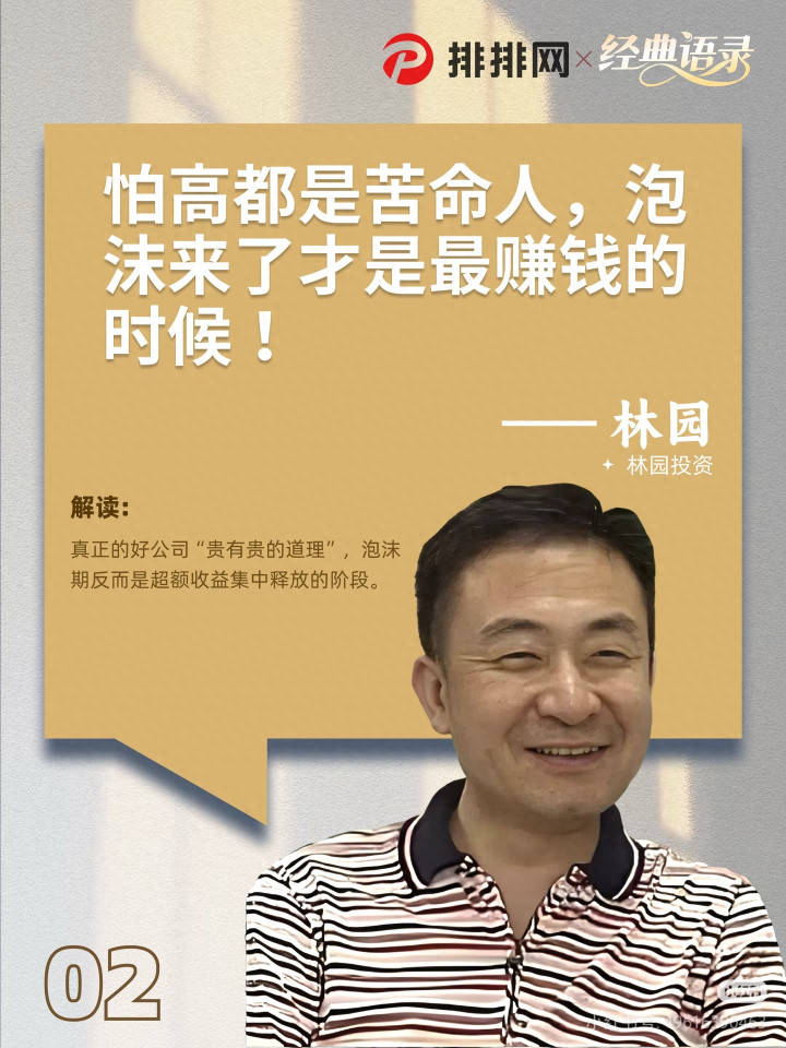 林园说的这句话,确凿是戳中了90%散户的命门:怕高皆是苦命东谈主,泡沫来了才是最收获的技艺!